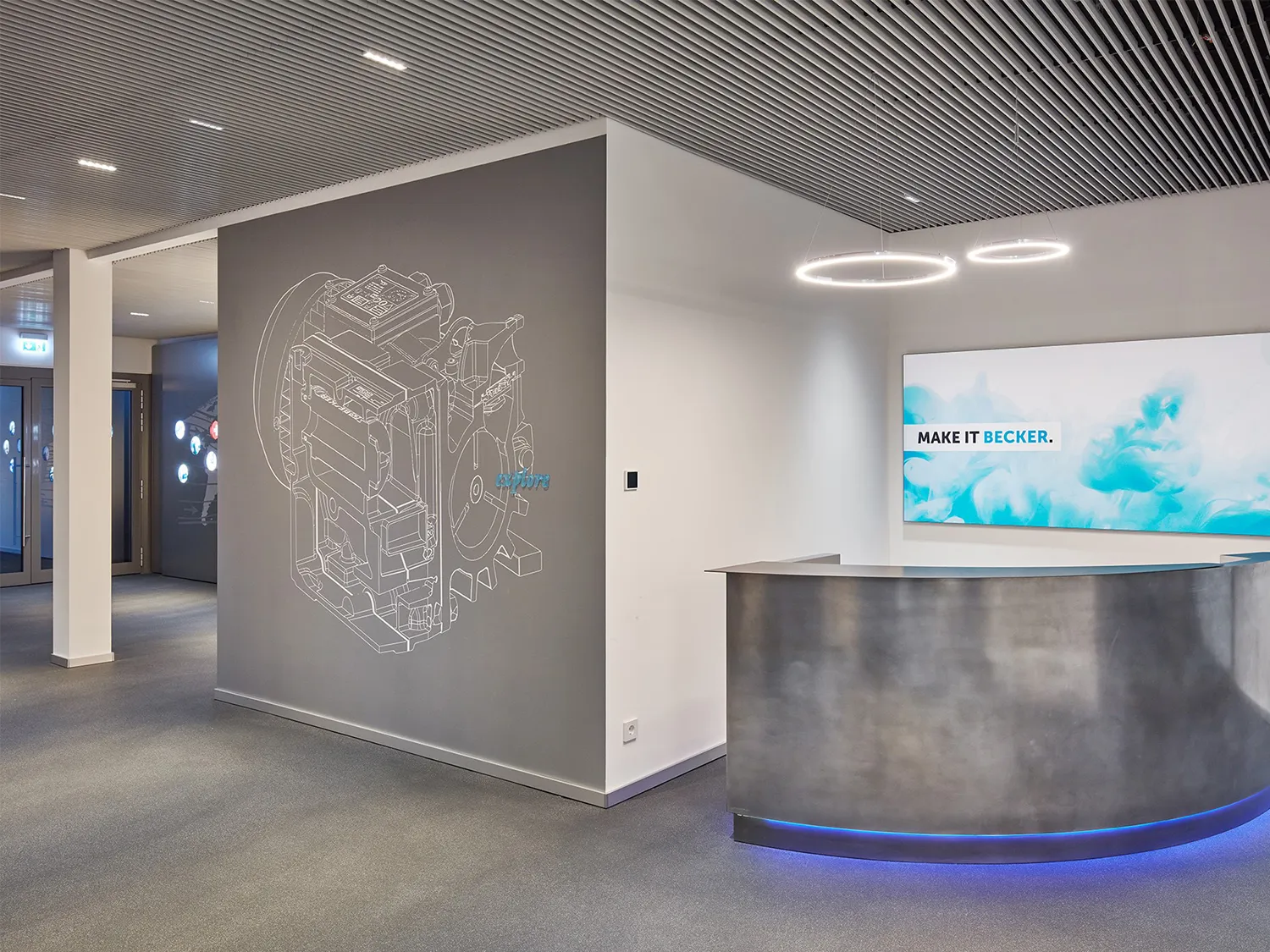 » Architektur Schöpf & Partner: "The Forum Gennebreck now offers transparent airly spaces for seminars, workshops, presentations, and events. This transparency visualizes the company's shift towards New Work and to introduce BECKER customers to the manufacturing and applications of pump technology."
