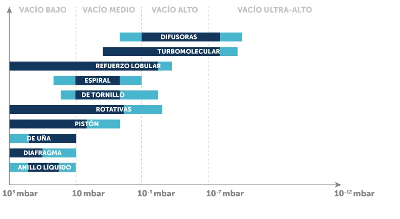 Es importante seleccionar la bomba de vacío adecuada para cada aplicación para garantizar el rendimiento y la eficiencia óptimos. Es importante tener en cuenta que, aunque los diferentes tipos de vacío se utilizan en diferentes aplicaciones, hay cierta superposición y los límites entre los diferentes tipos de vacío y bombas pueden ser a menudo difusos.